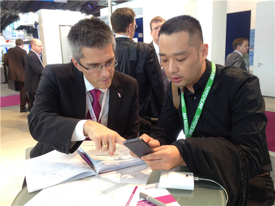 圖為姜曉東副總裁與贏創(chuàng)美詩工業(yè)生產(chǎn)線負(fù)責(zé)人菲利普博士洽談